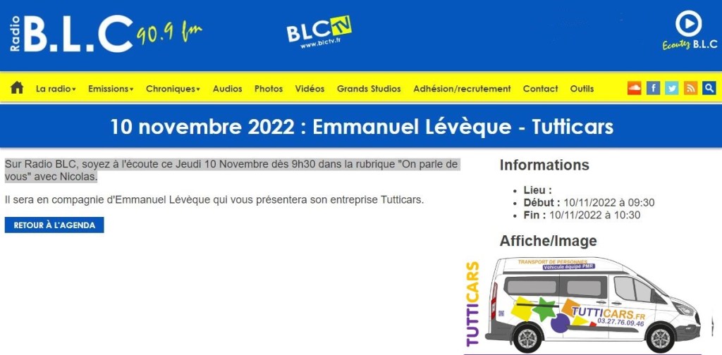 Passage sur l’antenne demain 11 Novembre à 8h30 et Lundi 14 Novembre à 8H30.